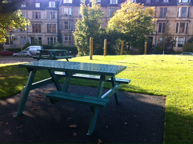 There are lovely new green benches and chairs, which increases the amount of seating we had. And we have the foundations and safety surfacing in for our new hammocks, which will be fitted as soon as the grass has grown over the surfacing.